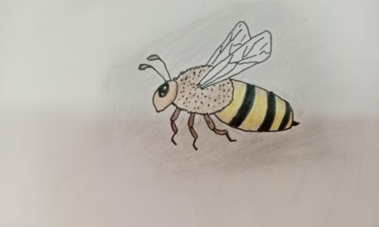 ▪️ نلاحظ أن الخطوط بالقلم واضحة، واثقة وثابتة إلى حد كبير، ما يدل على تحكم فطري في المسار الحركي لليد.. والتلوين محدود ومباشر دون تدرج معقد، وهذا طبيعي لمرحلة عمرية مبكرة، ويؤكد أن الهدف الأساسي هو تقديم الشخصية، لا الإبهار اللوني.