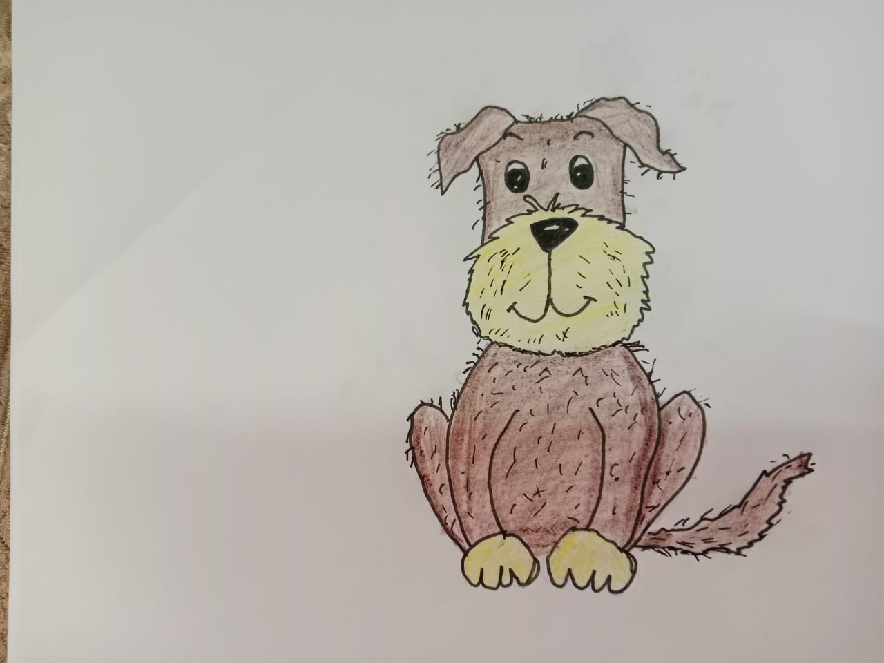 ▪️ الشخصيات المختارة (مثل الحيوان المرسوم بتجسيد إنساني لطيف) تحمل رمزية البراءة، الود، وربما انعكاس ذاتي للطالب في شخصيات يحبها ويميل إليها.. والعيون اللامعة والكبيرة تعطي إحساساً بالتواصل مع المشاهد، وتدل على حس مبكر بقواعد الارتباط العاطفي في التصميم (Emotive design).. والأقدام والأيدي مبسطة، لكنها منسجمة، ما يشير إلى فهم فطري للتوازن التشكيلي رغم عدم وجود تدريب منهجي.